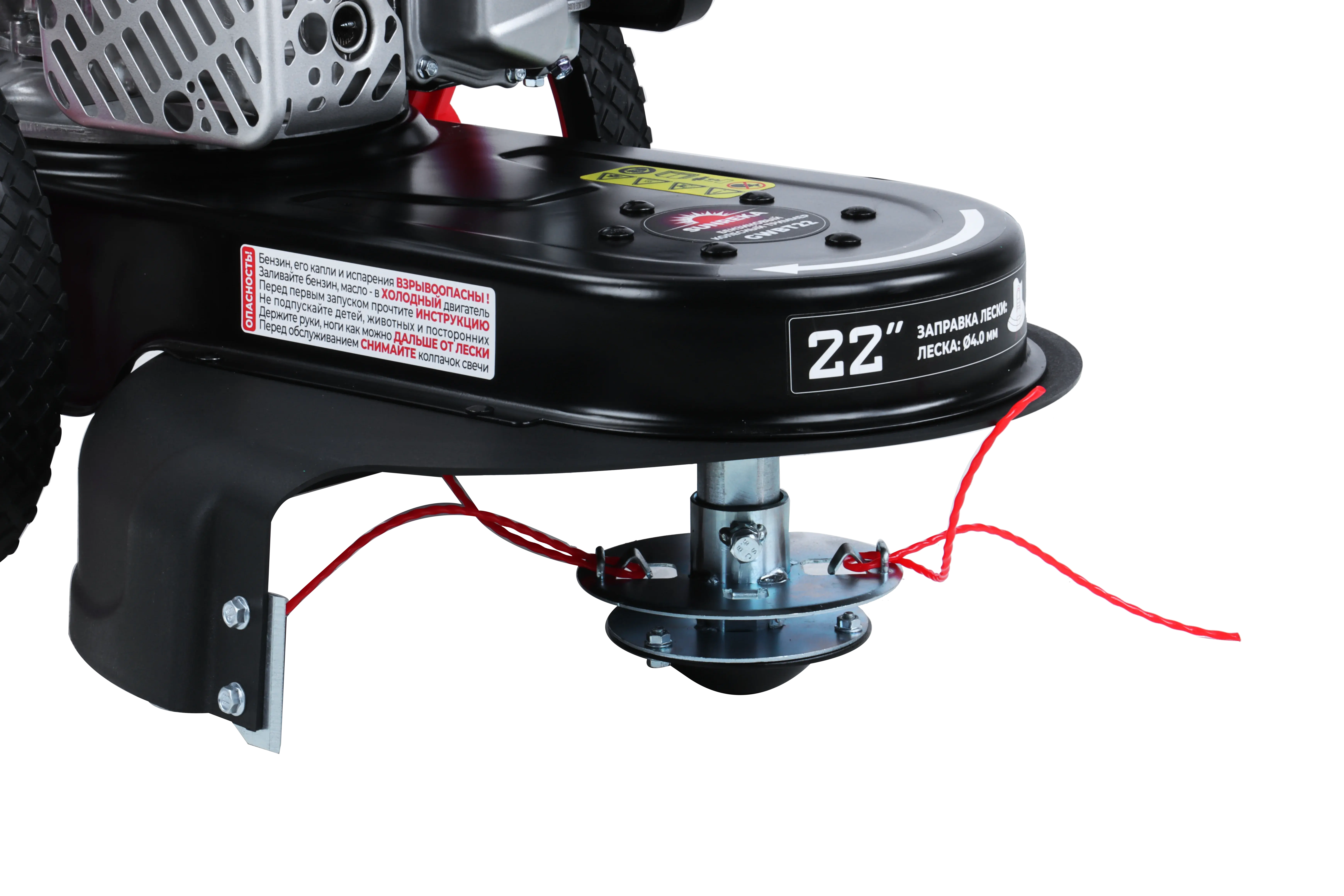 Бензиновый колесный триммер SUNREKA GWBT22 построен на базе прочной цельноштампованной деки и 4х-тактного бензинового двигателя с вертикальным валом рабочим объемом 170сс.